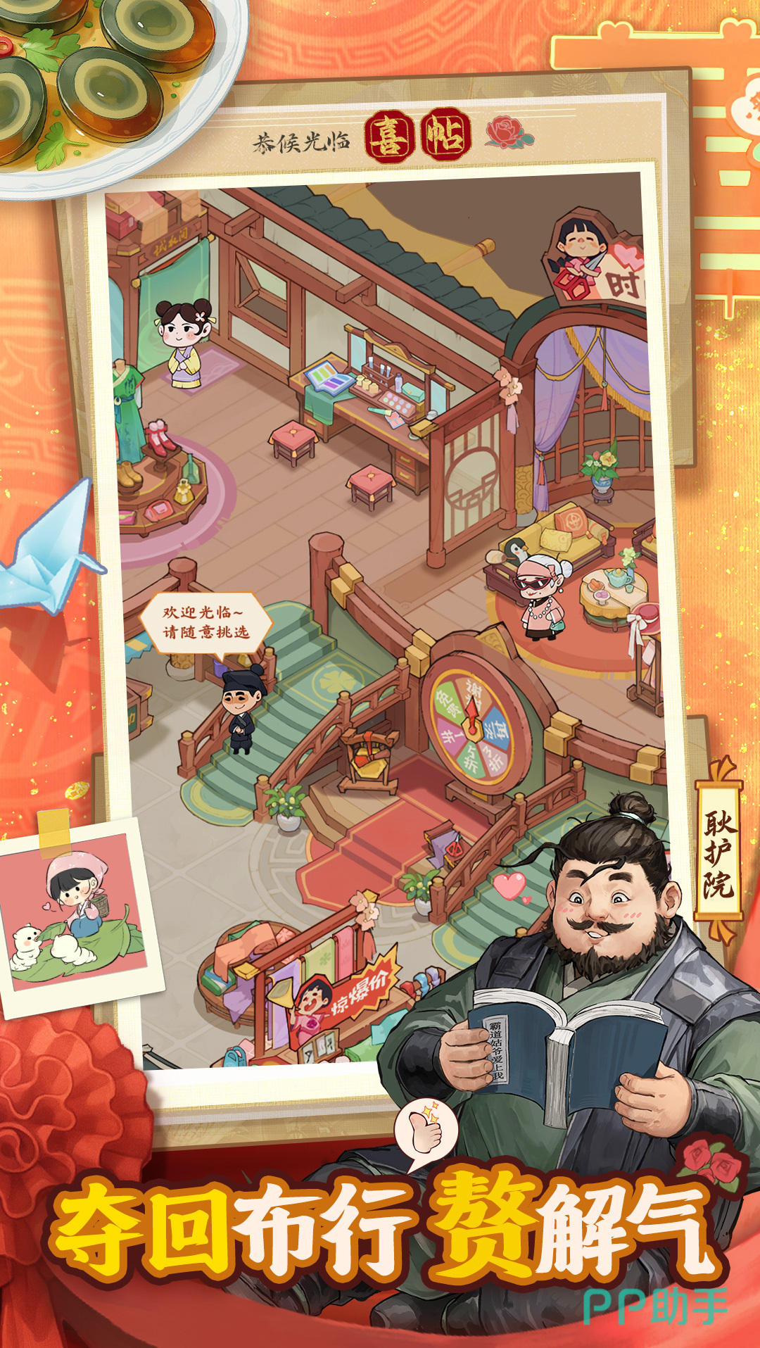 门客系统是游戏深度养成的重要模块。玩家可招募原著中高人气角色,依据智力、武力、统御、谋略等维度属性进行定向培养与职能分配:智力型门客显著提升店铺日收益,武力型门客负责安防护卫与商路护送,统御型则优化商会管理效率。此外,游戏内置跨服商战竞技系统,支持全服范围内的商铺竞标、资源争夺及联盟共建。玩家可自主创建或加入商会,共享贸易红利、协同对抗强敌,实现社交互动与策略对抗的有机统一。