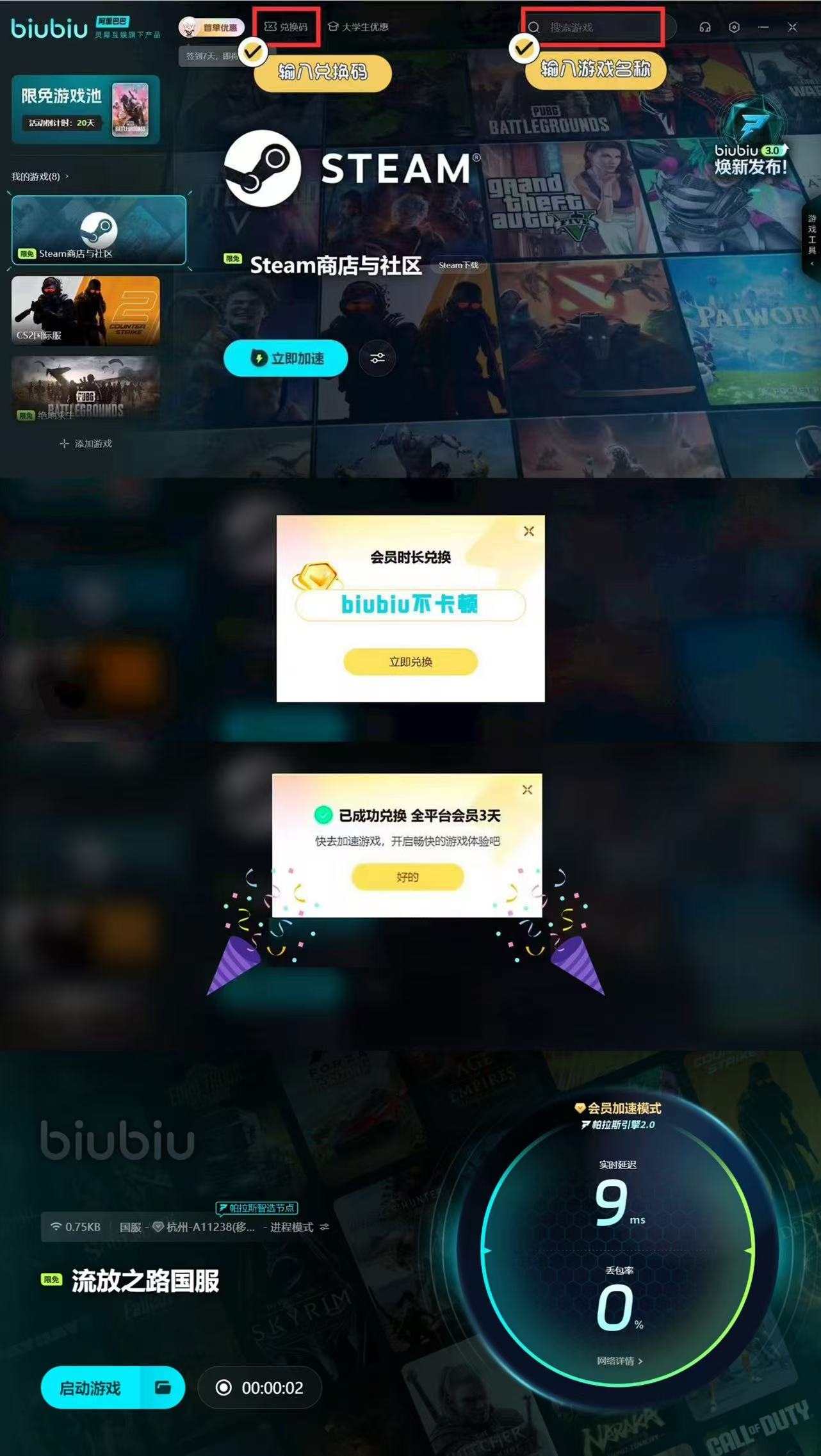 在使用biubiu的加速前,不要忘了先来领取下加速器上免费加速福利。biubiu在经过升级优化后,给玩家们更优质的加速效果,在加速福利上更是只多不少。新用户可以在注册加速器并登陆后直接获得3h的加速,用兑换码“biubiu不卡顿”可获得3天的加速。除了这些之后,加速器上老用户再次登陆的话也有限定的福利内容,想要了解详情的话那就点击链接下载后再次登陆。