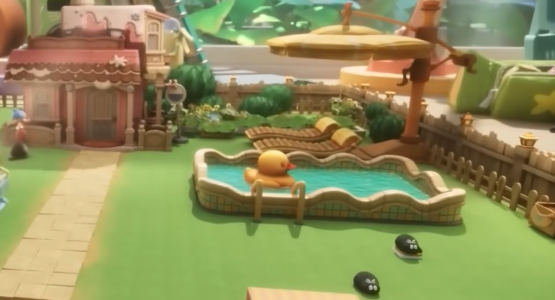 发挥创造力,你还能建造专属泳池并注入清水,邀请朋友一起畅游其中。户外区域设有由毛线团构成的独特绿植,点缀在广阔的绿色草坪上,呈现出童话般的景观效果。当情绪低落时,可通过副本中的涂鸦玩法释放压力,任务形式多样且富有趣味性,持续激发探索欲望。