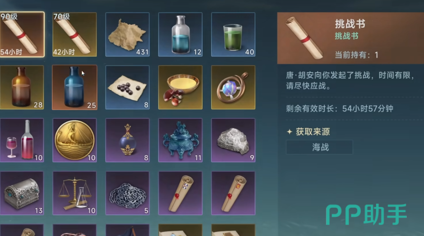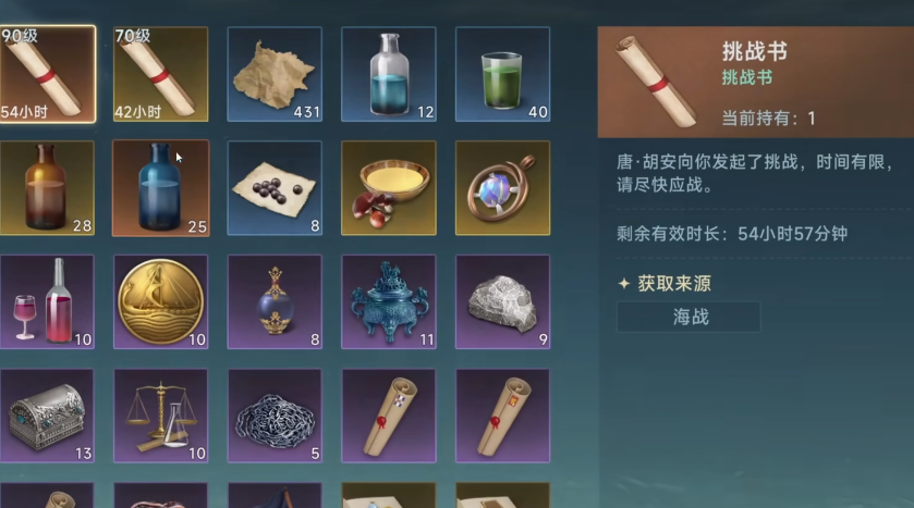 挑战书也是游戏里的一种玩法,会有其他的成员向玩家发起挑战,每一个挑战书都会有相应的时长,玩家可以在倒计时结束之前使用挑战书,这时候就会和发起挑战书的成员战斗,战斗开始之后,玩家和对方的船只就会在海上开战,这时候就可以利用战术不断对与对方进行攻击,玩家可以按照自己顺手的攻击方式和技巧开战,只需要保证自己能击败对方的船队,即可获得挑战书的胜利。