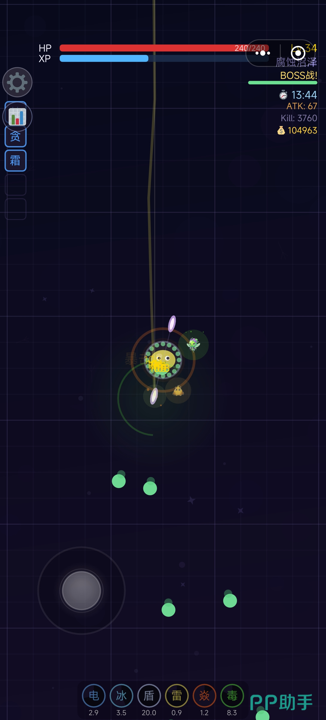 游戏采用关卡自由选择机制,初期可按难度梯度挑战不同区域。敌方单位具备差异化形态与攻击模式,需玩家实时调整走位与技能释放时机。史莱姆本体虽无传统职业划分,但可通过技能节点激活分支能力,例如弹射分裂、酸液溅射、护盾吸收等方向,同一技能体系内连续升级可触发质变效果,大幅提升单局输出稳定性与容错空间。