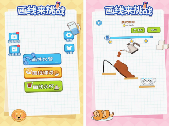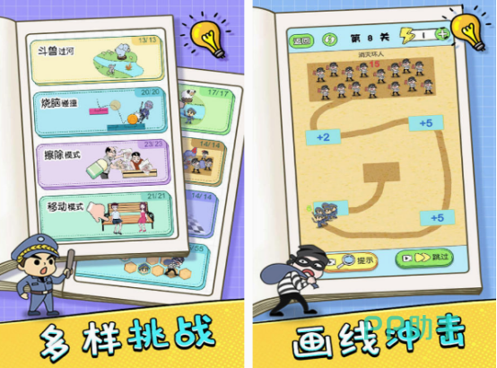 这款以画线为主要玩法的游戏中,你需要面临的挑战非常的丰富,可以在玩的过程中选择自己比较感兴趣的玩法,接受挑战。每次完成以后,既能选择重新再玩一次,还能获得丰厚的奖励,或者是进入下一关。如果在玩的过程中实在不知道该怎么办的情况下,还有提示,可通过点击这两个字的方式,帮助你在闯关的过程中更顺利。