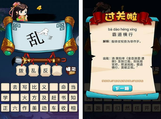这款以看图猜成语为主要内容的休闲游戏中,采用的是卡通的设计画面,还有丰富的关卡,你在玩的过程中,只需要发挥自己的思维,根据里面的内容,正确的填写四字成语就可以了。还会给大家提供多个文字,只要在这些文字当中选择正确的就可以了。每次顺利通关以后,还会显示四字成语,正确的拼音解释以及出处帮助你了解更多的知识。