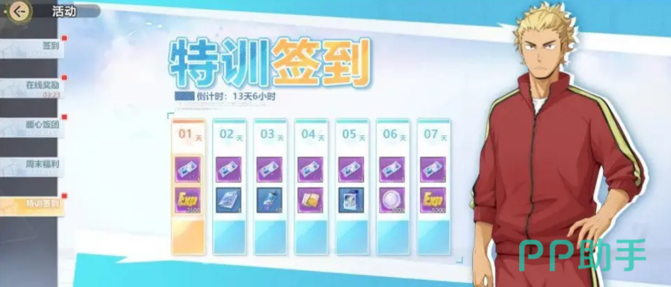 累计登录七天,即可免费领取SSR角色“泽村大地”,让你的队伍从起步就多一位顶级球员,省去了培养基础球员的时间。这项奖励对于新手来说尤其关键,毕竟泽村大地在比赛中能发挥出超凡实力,让你在比赛中更轻松取胜。