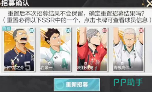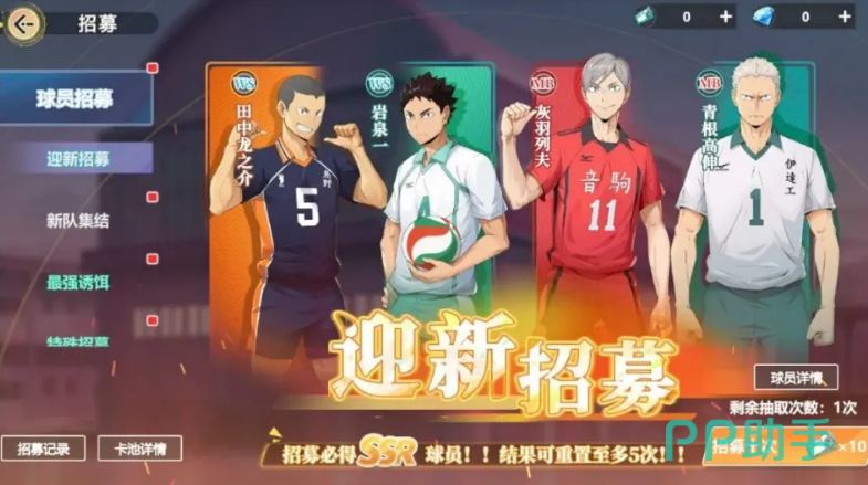 玩家们只要完成新手剧情任务,即可解锁“迎新招募”,这可是获得SSR角色的好机会。不仅能自选心仪的SSR球员,还能从田中龙之介、岩泉一、灰羽列夫等多个强力角色中选择,每个玩家都可以搭建专属自己的初始阵容,十连抽卡还拥有10次重置机会,轻松打造强力开局。