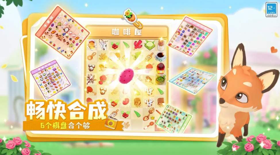 游戏里会设定多个不同的主题棋盘,一个棋盘代表的就是相应的合成种类,既可以合成各种蔬菜瓜果,让他们的成长速度更快,同时收获更多的品种,同时也可以在游戏里合成鲜花,或者是咖啡厅里的各种物品,这样才能获得更多的原材料,用来经营店铺。