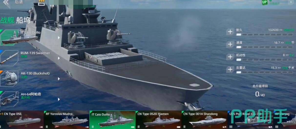 后期升级可以导弹替换为东风-17(变轨突防)。升级双波段雷达提升探测距离,优先锁定敌方指挥舰或航母。导弹(如SSM-700K海星)升紫后伤害提升约30%,且装填时间缩短,适合快速清场脆皮目标。鱼雷和火箭炮作为次要输出,建议升到蓝色品质后暂停,确保基础伤害达标即可,后续再逐步强化。