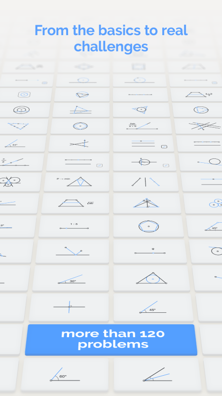 在这里,玩家将化身几何探险家,在无限延展的平面坐标系中,运用圆规与直尺两大基础工具,通过精准操作绘制出垂直线段、内切圆弧及完美圆形等几何构造。游戏以严密的数学逻辑为骨架,每一道谜题都如同精密齿轮般环环相扣,玩家需在反复推演中寻找最优解,用最精炼的步骤勾勒出数学艺术的至臻形态。当抽象公式转化为可视化的动态图形,玩家不仅能沉浸于几何对称的视觉盛宴,更能在反复试炼中淬炼出缜密的逻辑思维。