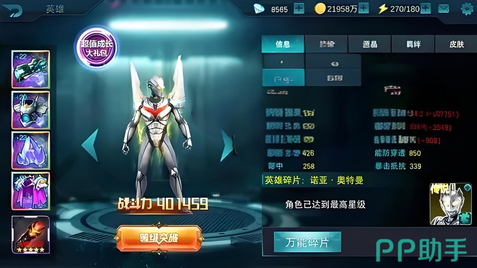好了,奥特曼传奇英雄2诺亚技能介绍内容全在这里了,总体来诺亚这个英雄是非常不错的英雄,而且通过他的各个技能介绍也足以发现他的技能基本上没有任何的短板,性价比非常的高。