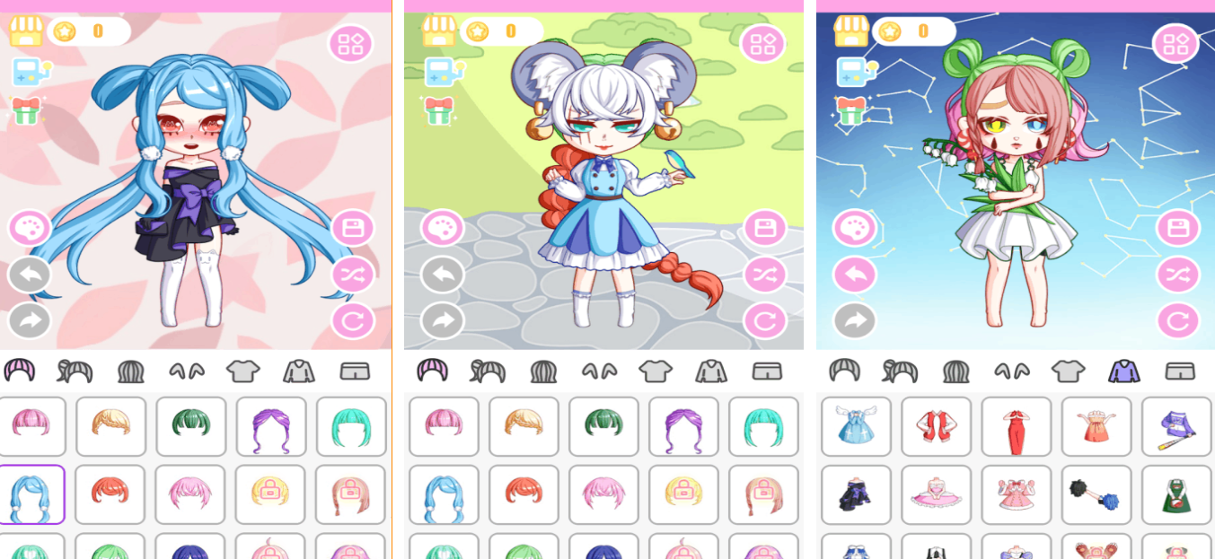动漫装扮是很多换装游戏爱好者喜欢的日系风换装佳作,具备超简单的装扮操作和化妆任务,发型和瞳孔颜色都可以自由切换,甚至可以为头发和服装进行黄色玩起来更为有趣,美轮美奂的日系风格背景有着与众不同的观赏性,高互动性的换装类设定也是哦深入人心,眼线和粉底等超多化妆道具也应有尽有。