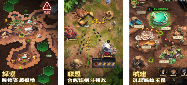 该游戏以微观视角切入,让玩家扮演蚁群领袖,经营属于自己的地下王国。核心玩法围绕生态链展开:培养工蚁采集资源,训练兵蚁抵御外敌(如瓢虫),并通过蚜虫牧场获取蜜露维持种群发展。游戏地图包含山地、水域等多种地形,构建出一个逼真的微型自然环境。玩家需统筹资源分配、兵种搭配与领地扩展,体验从微小族群到庞大蚁国的成长历程。