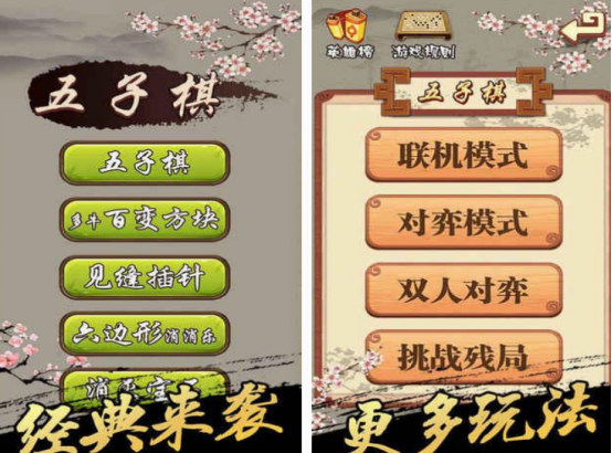 在这款可玩五子棋的游戏,不仅在风格上给大家的感觉历史悠久,更是展开二人对弈的纯策略手游。通过联机模式,可帮助你与好朋友共同玩,因为它还新增好友房,通过邀请身边的好友进行作战的方式。无论两个人在什么样的环境下,都能通过这种方式下五子棋,还支持残局挑战模式以及人机模式等,你可自由的选择。