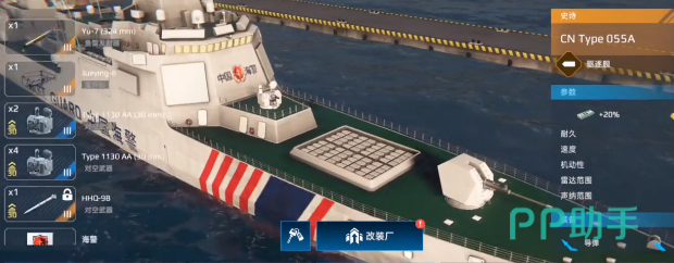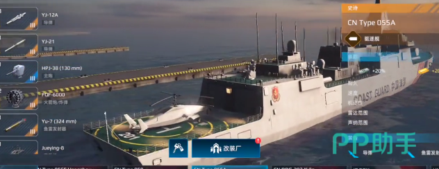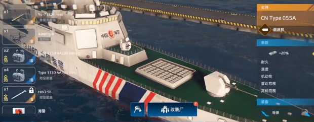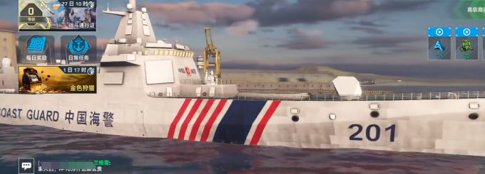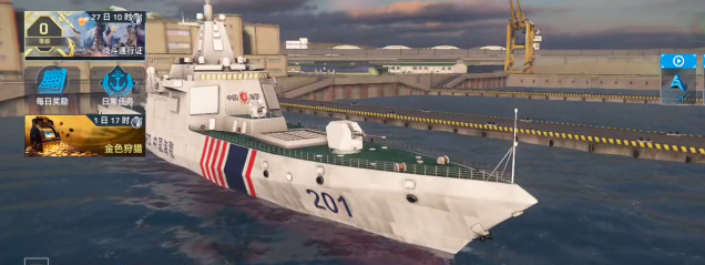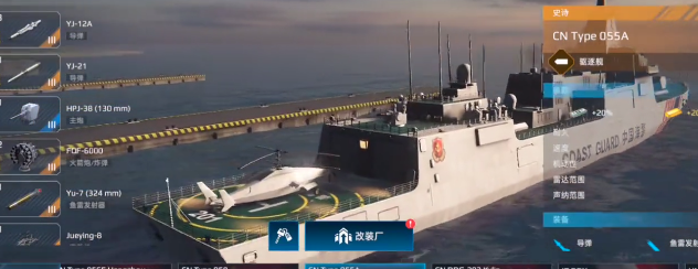从外观来看,制作组本身就会在细节上很花费心思,055a与055的海警皮肤,尽可能会贴近真实的海警船,整个外观的设计会有大概90%的相似度。虽然中间的标志画面有一些模糊,但是通过旗子上的图案还是能够感觉到设计的初衷。