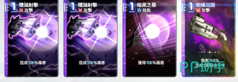 在战斗体系中,黑玫瑰诗人被明确归类为“虚空猎人”职业下的高优先级输出单位。初始即携带四张专属卡牌,全部围绕“子弹机制”构建协同逻辑:其中两张基础伤害倍率为100%,一张可提供等同于自身最大生命值100%的护盾,最后一张则能生成一张基础伤害倍率140%的输出卡。该配置使她在未进行任何养成投入的前提下,即可在早期关卡中实现远超同阶角色的单轮爆发与持续作战能力。