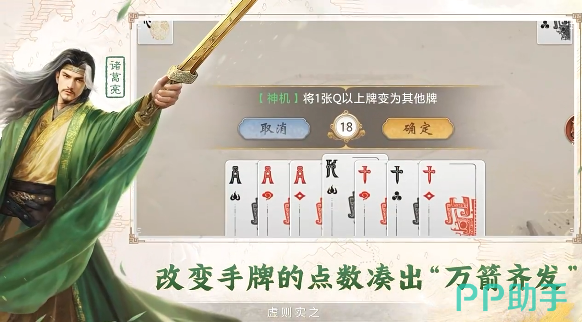 赵云定位灵活多变,通过弃置单张或对子即可激活万能牌使用权限,赋予其极强的临场应变能力;诸葛亮则以双技能驱动信息差优势:“妙算”支持分阶段探查底牌,“神机”可将大于K的手牌按数量最多牌型进行重构,大幅提升出牌容错率与组合自由度。