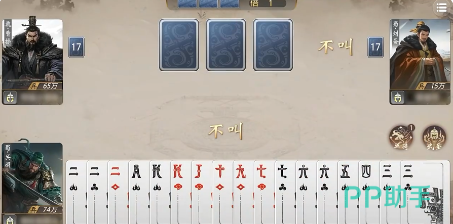 蜀国阵营强调进攻效率与手牌续航。关羽凭借“武圣”特性,在对手打出顺子时可即时补牌,显著缓解资源压力;进入“单骑”状态后,再打出顺子即可获取一张万能牌,若搭配赤兔马装备,更可达成四联顺爆发,实现压制性连击。
