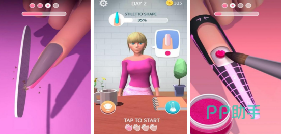 简单的画面以及色彩缤纷的美甲造型,是专门为更多女性进行打造的,在这里您将要成为一名顶尖的美甲师,每天接待着各种各样的顾客,每位顾客的要求和审美是完全不同的,要根据顾客的需求进行设计。其中包括的美甲道具也应有尽有,玩家可通过随意组合的方式打造出更加独特的美甲艺术,长时间体验后还能提升个人审美。