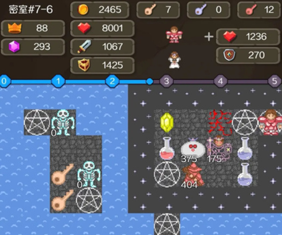 新新魔塔2密室位置在上面已经进行了详细的介绍,玩家只需要到达这一层,基本上都能观察到密室,想要进入这个密室都需要和这些怪物战斗才可以,顺利战胜他们之后就能收集这间密室里面的宝物。