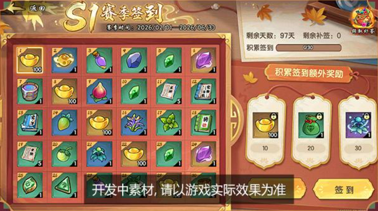 赛季评分体系分为两大维度:玩法分与养成分。玩法分由梦墟通关最高层数、牛魔梦魇挑战等阶等实战指标构成;养成分则综合魂器总战力、装备墟化总层数及技能平均星级计算。累计分数对应甲乙丙丁戊五级段位,达成目标即可领取专属奖励。此外,赛季期间每日签到可获取高级资质草、自选宝石袋等稀缺资源,务必保持连续登录。