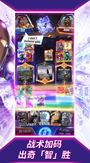 玩家将扮演指挥官,通过收集和部署超级英雄卡牌,在动态的对战场景中展开激烈的策略对决。每个英雄不仅拥有高度还原的技能与造型,还具备独特的战术价值,玩家需根据战局灵活调整卡组,以实现最优的战术组合。游戏还引入了“SNAP”机制,玩家可以在关键时刻通过加倍赌注来提升胜利的收益,这一设计极大地增强了游戏的紧张感与策略深度。