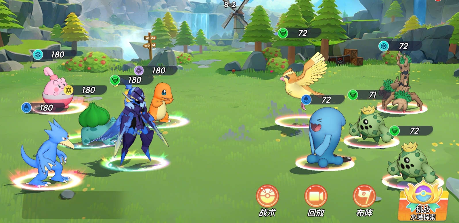 每关敌方阵容均不相同,战斗前可预览对手宝可梦类型、等级与技能倾向,并自由调整己方出战队伍配置。实战支持自动战斗、2倍速播放及“切出战斗”模式:启用后系统将持续代打直至遭遇无法攻克的关卡为止,大幅降低操作负担,让玩家更聚焦于策略构建与长期规划。