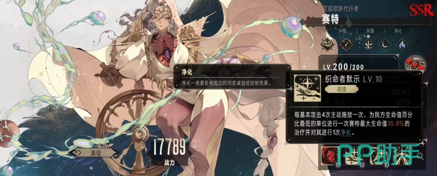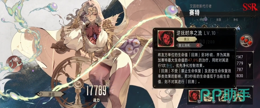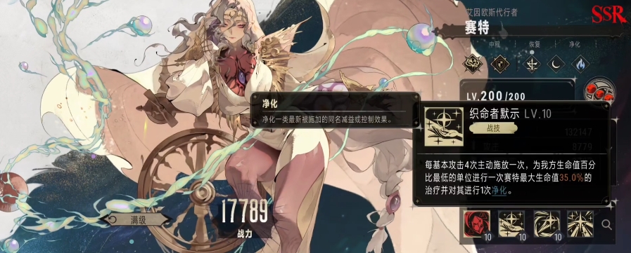 赛特的特性是满足特定条件时,例如友方单位被净化成功等情况下,赛特的战技就能够再次触发,赛特的战技本身还带有净化效果,这个净化效果可以将目标队友身上的减益或者是控制效果彻底清除掉,在战斗中,队友常常会受到敌方的各种负面效果影响,如减速、眩晕、中毒等,这些负面效果会限制队友的发挥,而赛特的净化效果就可以让队友能够重新找回战斗的状态,同时因为战技本身带有着净化效果,所以完全可以触发赛特的特性治疗,两个技能的效果累积起来,一共能够达到 45%最大生命值的治疗效果,这样一来赛特的战技无论是在治疗血量还是在净化负面效果方面都有可用的能力。