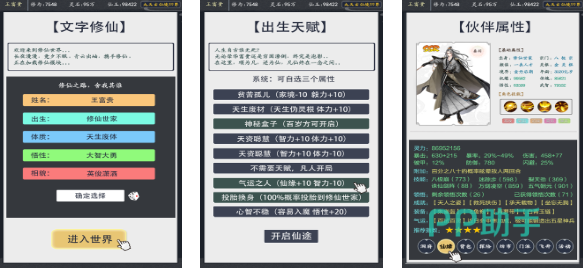 这是款画风设定精简的文字主题修真冒险类手游,白底黑字的画风结合水墨背景很有辨识度,用文字表述的战斗过程也具备超强刺激性,抽签获取道具和修真天赋的设定也很随机,元神修炼、合成丹药等修真类玩法应有尽有,独创的修真世界观以及修仙理念都是亮点,如果你也对那种用文字来表述的修真手游感兴趣,那么修仙传这款独立文字神作你可别错过。