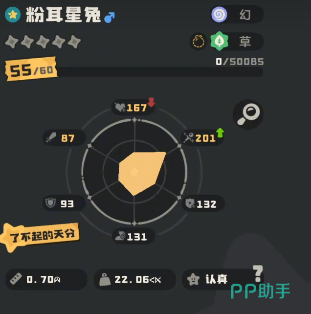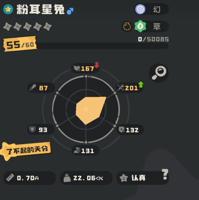 该精灵属性为单一“幻”系,在属性克制维度存在天然局限,需搭配合理阵容规避短板。总种族值达601点,高于当前多数同阶段精灵(普遍未突破600),各项能力成长均衡,尤其在速度与特攻端具备明显优势,为连招节奏与爆发输出提供坚实基础。