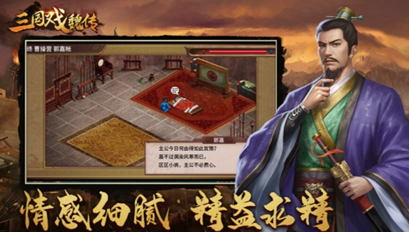 一款深度沉浸式的三国策略战争游戏,将玩家带入一个生动再现的三国时代场景,众多熟悉的三国英雄人物悉数登场。玩家扮演一位主公,肩负发展势力和扩张领土以及加固城池的重任,与对手斗智斗勇,展开一场场策略的较量,一切尽在玩家的掌握之中。作为势力的领航者,玩家不仅要指挥战争,还需妥善管理政务和外交等多领域事务,全方位考验玩家的治国才能。