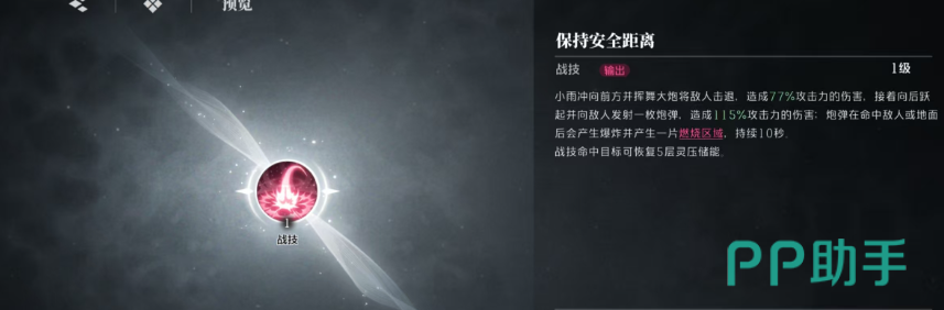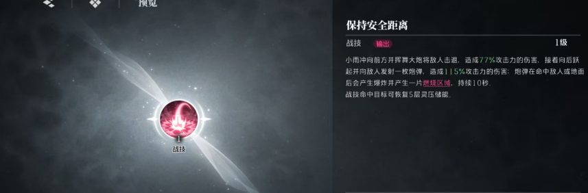 只有等敌人离开这个区域之后,过了两秒钟才会全部结束,还有一个战技是保持安全距离,望江门可以操控角色来向前冲击,并且挥起大炮来攻击对方,之后向前跳跃来发射炮弹,同样也可以造成一次伤害,只要命中就可以产生爆炸的效果,还会燃烧一片区域,这个效果持续十秒钟,他的普攻效果也是非常不错的,可以对目标敌人造成近距离的攻打,造成六段伤害,如果普攻全部命中之后,还可以来恢复灵压的储存。