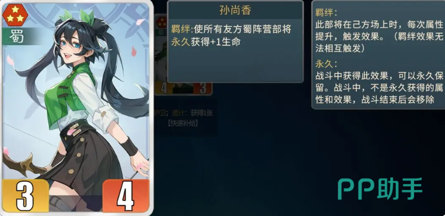 过渡期可启用孙尚香作为功能替代:她提供持续治疗能力,同时具备稳定的输出承接性,在关羽未成型前承担主力输出职责。其被动羁绊效果可在战斗中随属性提升实时激活,并永久保留已触发状态,为中后期战力跃迁提供坚实支撑。