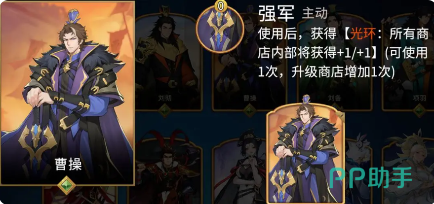 值得注意的是,曹操的被动存在明确触发条件:当商店完成升级后,其技能释放次数将提升至两次;且所有通过商店购置的部将,均能永久保留本次升级带来的增益效果。这一机制意味着——商店等级越高,曹操构建的增益雪球越庞大。但需警惕的是,新登场单位不会自动纳入光环覆盖范围,因此阵容配置必须确保核心战力在开局即完成部署,避免增益断层。