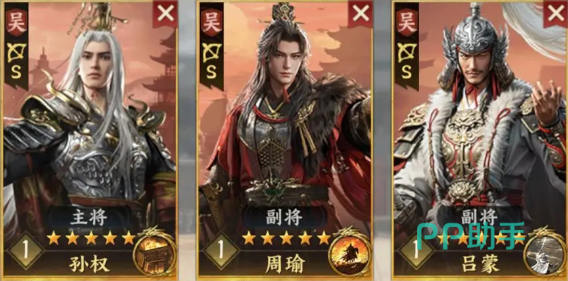 孙权、周瑜与吕蒙组成的持续伤害型弓兵队,专精于大规模团战中的群体压制。孙权可释放范围易伤效果,并提升全队主动技能伤害;周瑜能施加高强度的燃烧DOT伤害;吕蒙则针对已处于燃烧状态的目标进一步提升输出。三者技能环环相扣,越战越强,在持久战与群战中展现出强大统治力。