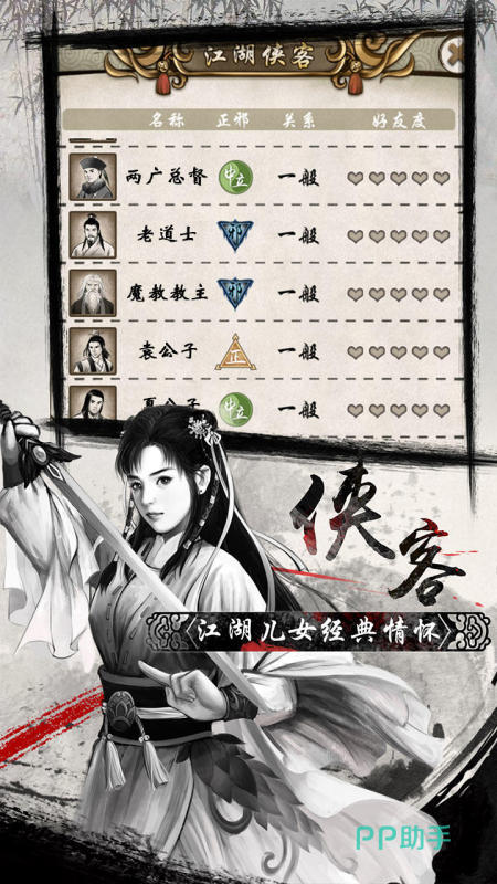 《单机群侠传》游戏中运用了标新立异的黑白风格设计,为大家呈现了一个令人心生憧憬武侠世界,此外,制作组还设计了多种振奋心弦的剧情任务,内置了各种令人炸舌的武林绝学,而且还加入了各类威严赫赫的江湖侠客,在这里你可以同npc去发展游戏关系,同时去经历各种鹿死谁手的惊险挑战。
