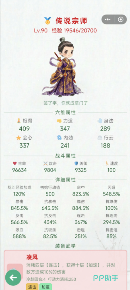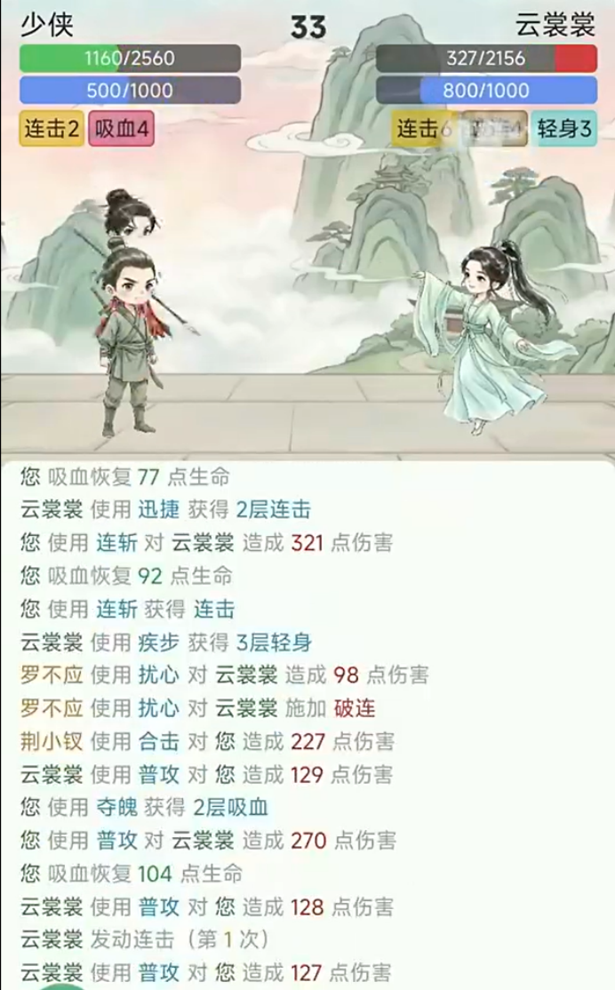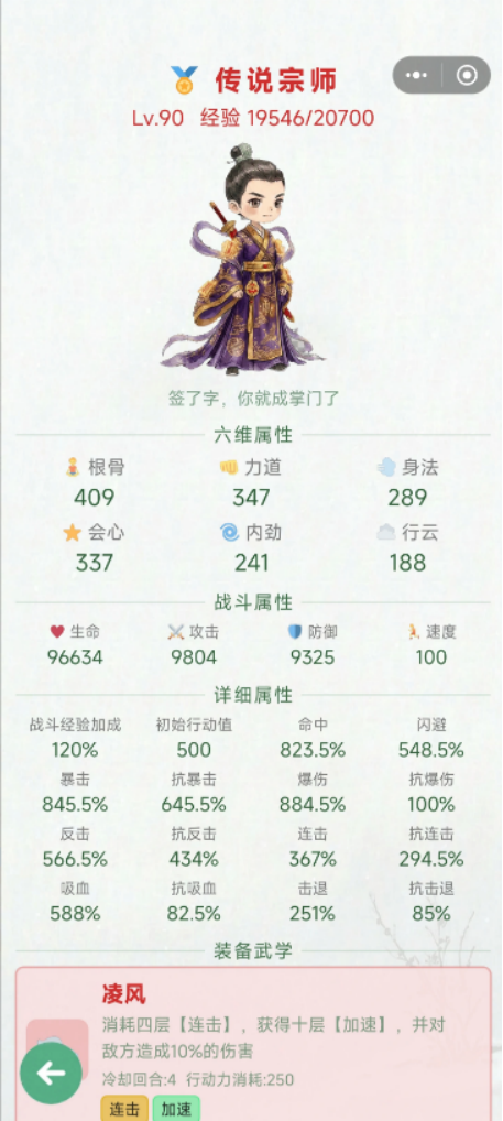 游戏核心由四大成长维度构成:武学系统提供基础招式与连招逻辑;神器系统赋予角色属性增幅、特效触发及流派定向强化;弟子系统承担协同作战、状态施加与战术支援功能;属性系统则作为底层数值支撑,影响命中、闪避、反击率、毒伤持续时间等关键战斗参数。四者深度耦合,任意组合均可催生差异化流派——如高闪避+毒伤叠加的“游身蚀骨流”,以低风险消耗为核心;或高攻速+暴击率+连击增益构筑的“千刃瞬杀流”;亦有依赖受击反馈、越战越强的“反震惊雷流”,以及吸血率叠加、续航能力突出的“长生归元流”。