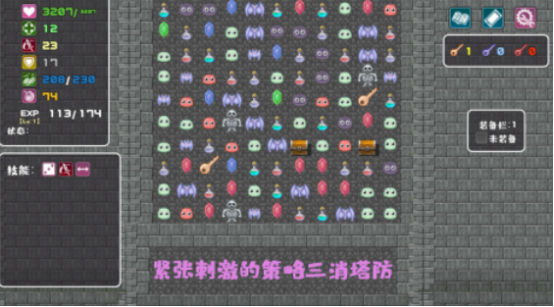 这款融入了三消,甚至有肉鸽元素所设计的游戏,不仅在画面上给大家的感觉比较经典,你也将成为里面的勇者,展开竖向割草的冒险之旅。在转生成为魔塔之后,会遇到魔物以及魔王,为了更好地将其打败,需要使用魔塔的能力制造陷阱。面临里面所具备的多个boss时,需要凭借着正确的三消玩法将其击溃,还可利用升级的方式,来解锁魔塔的功能。