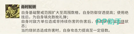 另一项被动“命运轮转”则增强了她的警戒覆盖范围与穿透能力,使她在战场上的控制影响力更为广泛。使用终极技能后还可补充礼弹,并使敌人陷入灼烧状态,同时提高自身攻击力,形成良性循环,进一步巩固其持续压制地位。