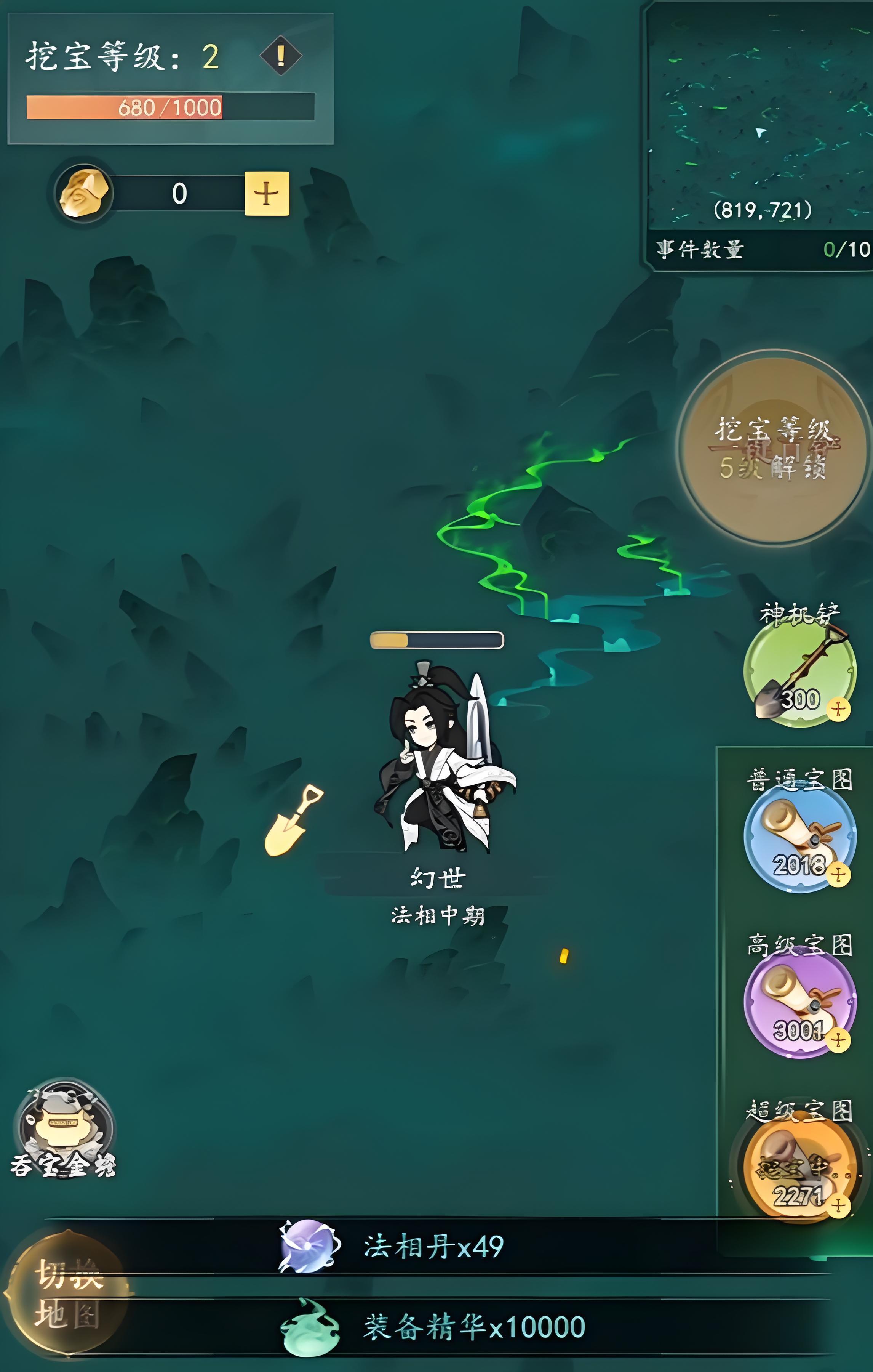 游戏中设有“挖宝”奇遇玩法,玩家只需在指定区域移动任务光标并使用铲子操作,即可随机获得灵材、符箓或稀有资源。挖宝等级越高,产出高品质道具的概率同步提升。角色达到一定等级后,可进行装备合成、灵宠捕捉等战力强化操作,进而挑战野外精英怪或副本关卡中的高难度Boss。