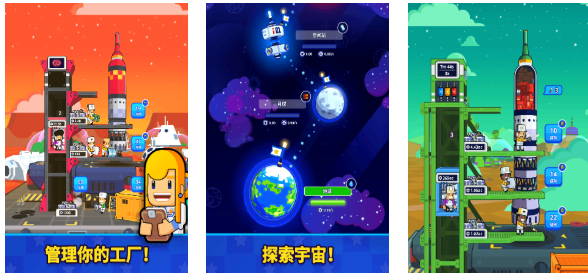 在这款科幻主题作品中玩家可化身工厂建造者,在不同星球打造工厂生产一些值钱的商品,每颗星球都有特殊的地理环境和迷人景色,也有不少矿物质资源等待大家开采打造,化身太空人管理工厂并冒险的玩法很刺激,各类休闲有趣的经营模块令科幻游戏迷沉浸,卓越的卡通美术风格结合科幻背景深入人心。