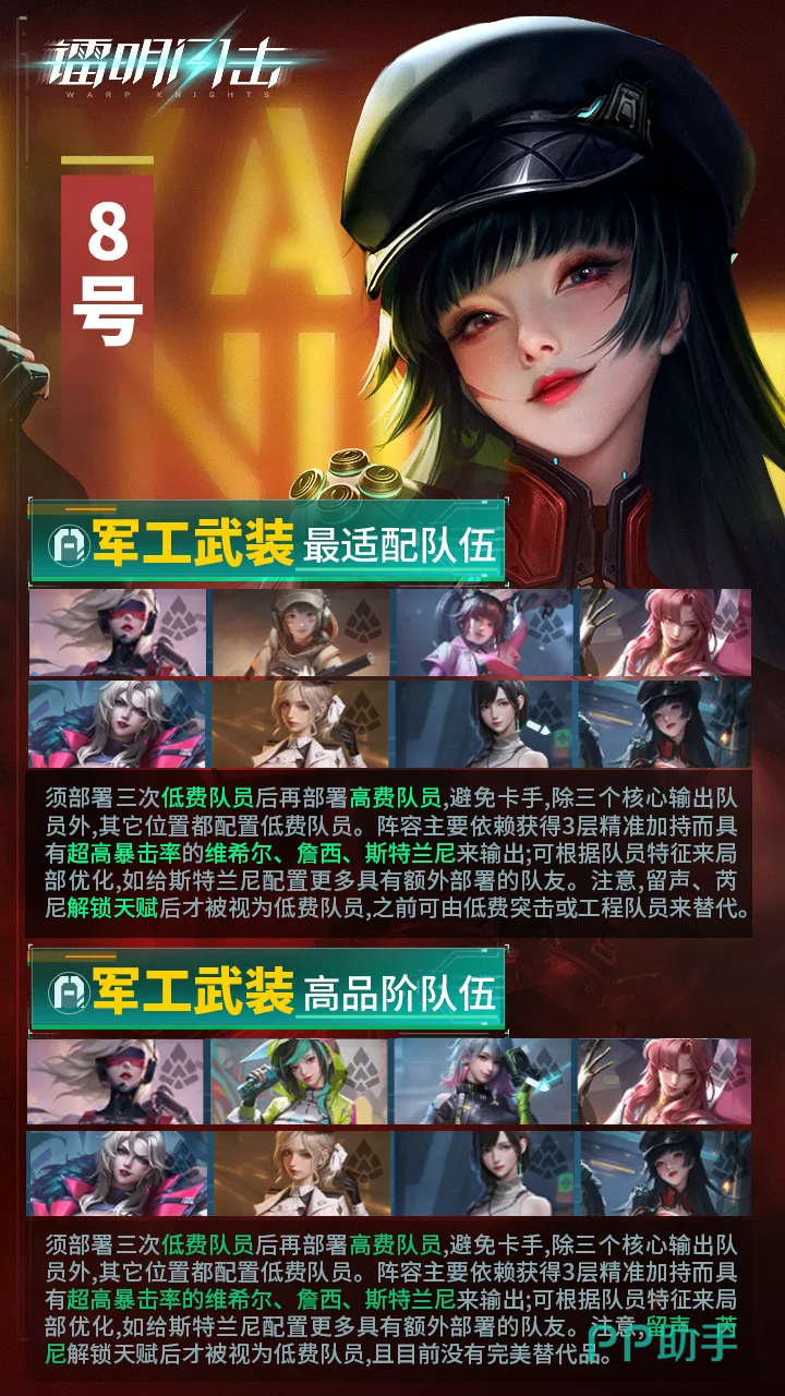 镭明闪击8号定位为隐刃职业,具备全游戏中独有的主动隐身能力。其核心技能“破影”可对单体目标发动四段连续打击,总倍率为275%基础攻击力。该角色入场与退场时均伴随烟雾特效,实现战术位移与状态遮蔽。面对高血量精英单位或Boss时,正面输出效率偏低,而利用其绕后突袭特性,可精准触发弱点抗性削减效果——此为关键输出窗口,配合暴击流队伍往往能达成一击制胜。需特别注意技能释放节奏:若在敌方拥有护盾、处于移动中或刚完成位移动作时施放,极易出现空技能或伤害溢出。理想操作链为——先部署重盾单位吸引仇恨并限制敌方转向,待目标进入站桩攻击阶段(如读条技能、固定前摇动作),再由8号从侧翼或后方七格范围内切入,同步激活“破影”。早期常见误区是开局即投送8号,缺乏前置牵制,结果三秒内被集火淘汰,严重影响战局稳定性。