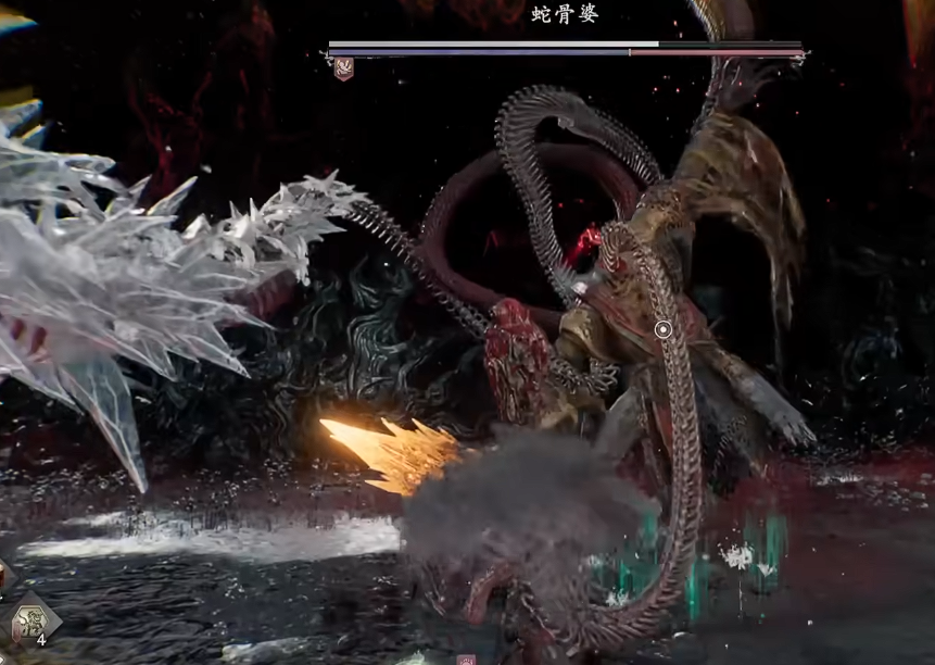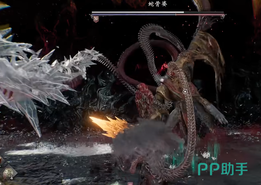 最终阶段(残血)将触发剧情变身:玩家角色自动切换为“铠甲战士”形态,所有普攻附带额外30%物理伤害加成,且免疫Boss全部常规攻击判定(包括红光技与蛇首咬击)。此时无需防御,只需保持移动接续重击即可快速削减剩余血量,最终以终结技完成斩杀。整个过程无无敌帧限制,但需注意维持耐力条避免空挥中断节奏。