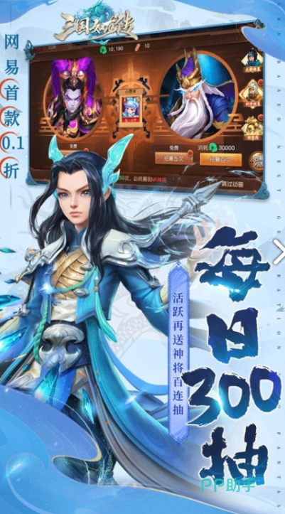 这是一款以三国时代为宏大背景的策略角色扮演游戏。在游戏里,玩家将化身为一名武将,怀揣着征战乱世和统一三国的壮志豪情。游戏运用了精美且细腻的画面,搭配逼真的战斗场景,让玩家仿佛亲身置身于三国之战那烽火连天和硝烟弥漫的战场之中。在游戏中,三国历史名将开局就送,任玩家差遣任用。那些玩家钟爱的三国将领,都将成为玩家统一天下道路上的得力助手!