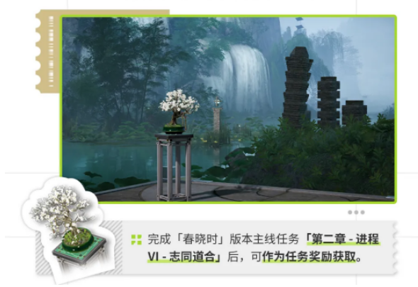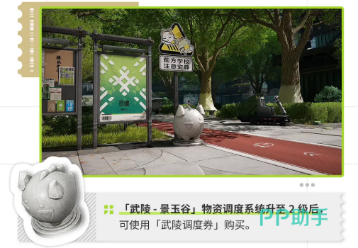 首批实装共三款装饰物品,获取路径各具特色:其一为「山槁小景」,属主线剧情奖励,通关「春晓时」版本第二章进程VI任务「志同道合」后自动获得,无额外刷取要求;其二为「充气教授」,需前往四号谷地矿脉源区,将当地物资调度系统升级至4级,并消耗谷地调度券兑换;其三为「龙泡泡石墩」,获取门槛相对较低,仅需将武陵景玉谷物资调度系统升至2级,即可使用武陵调度券换取。