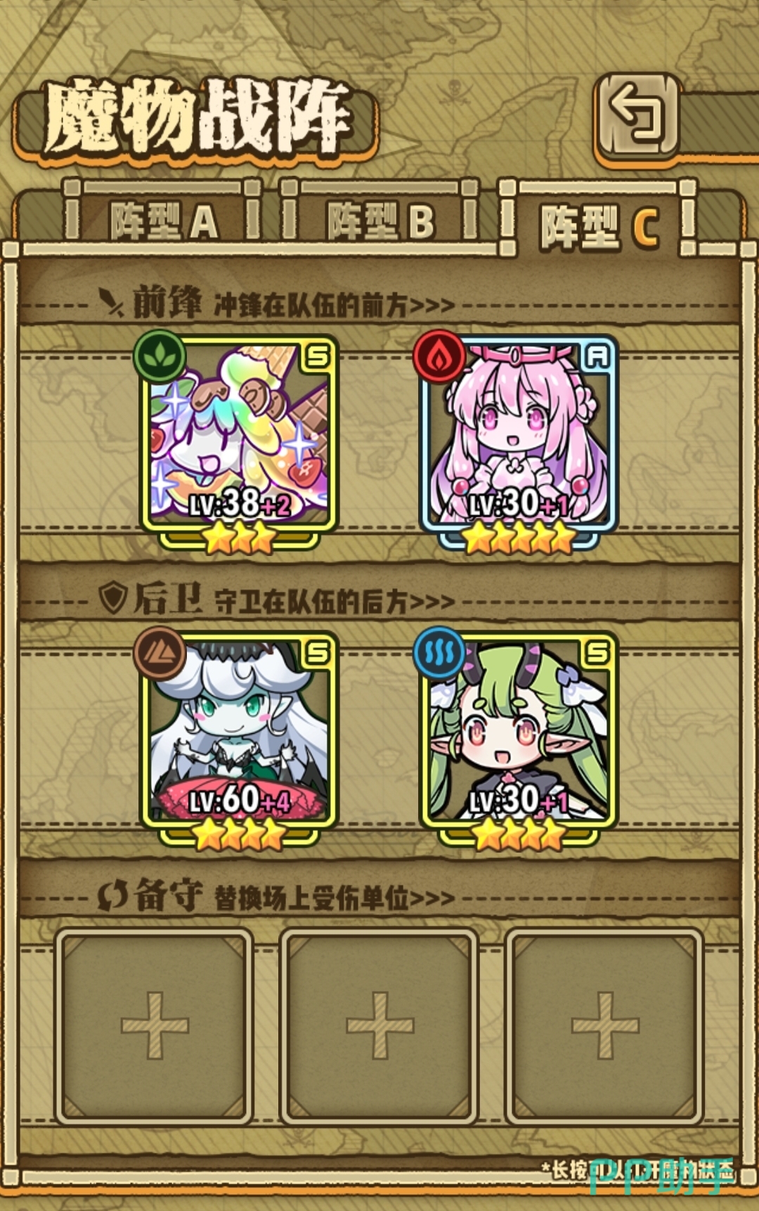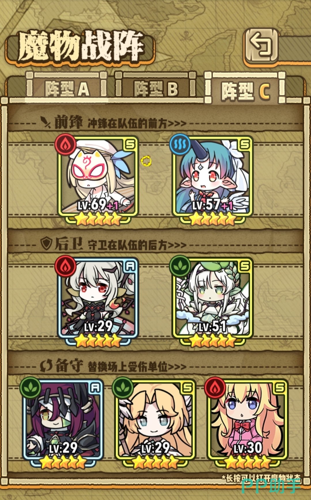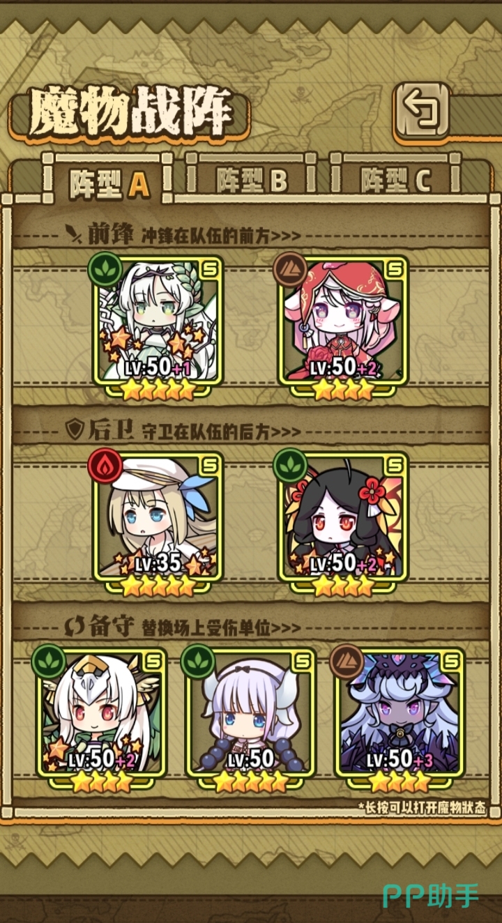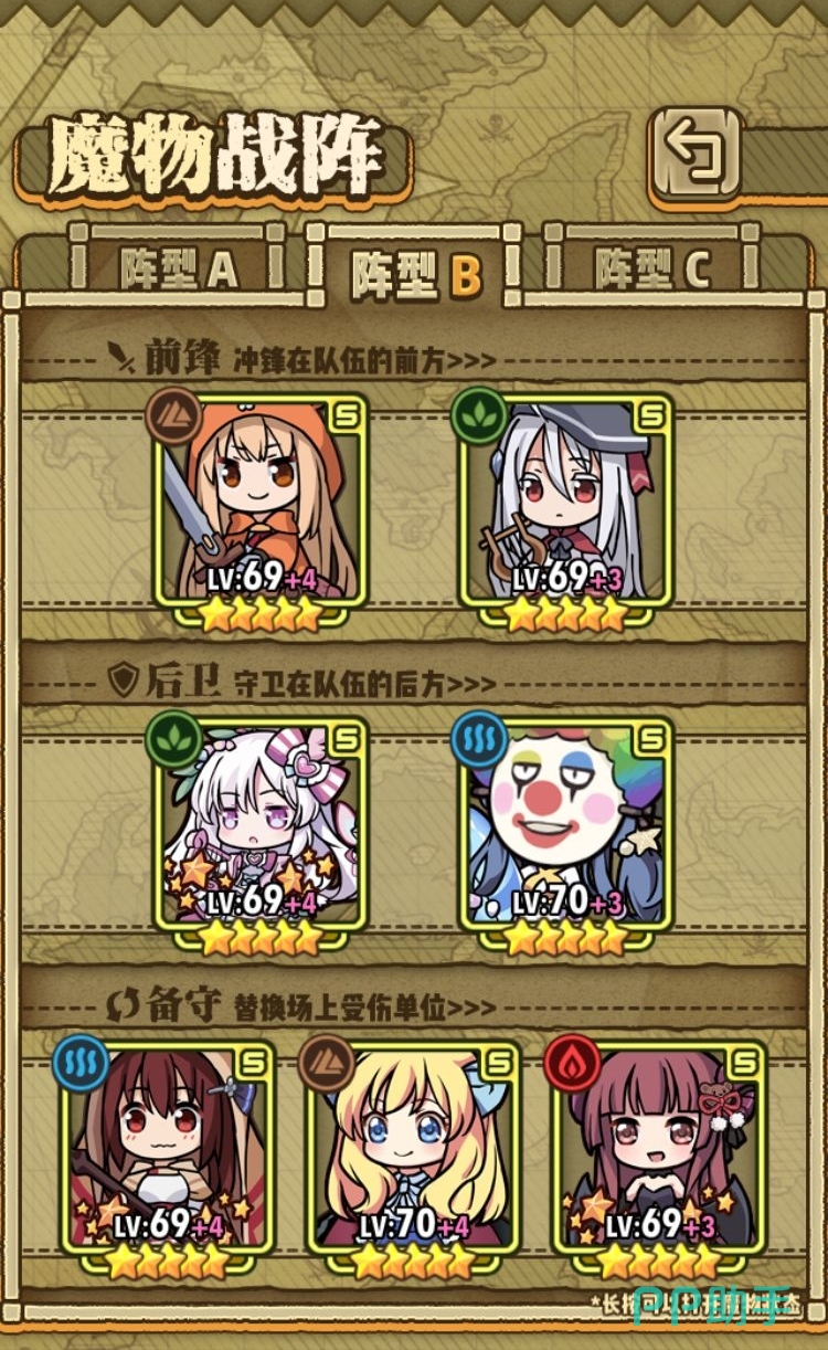 阵容的优势在于能够召唤出无限的魔物军团,加上buff效果,对敌人发起稳定持久的群体攻击,而且这些魔娘都是低星级可轻松获得,缺点在于攻击群体boss没有优势,可以搭配背心和手套等装备会加大攻击力。
