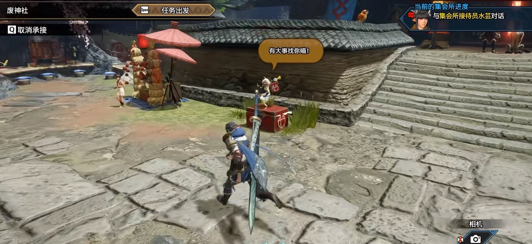 来到主村落之后,中央位置有一个外形长得像猫的信使,靠近与其对话就能够看到进行本地单机游戏以及创建大厅等联机功能,直接选择创建设置密码,记得狩猎难度等级一定要如实填写,这样好友进房之后会跟着人数的增多来提升怪物的血量和基础攻击力,完成之后就可以邀请好友加入了。