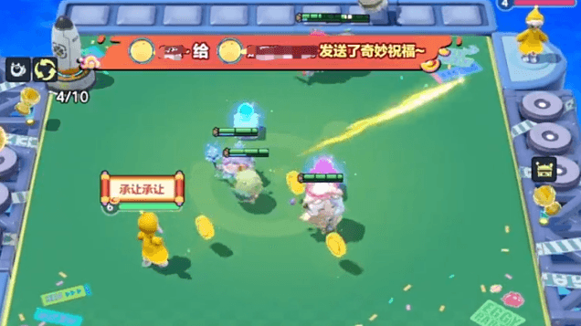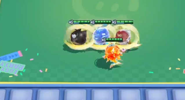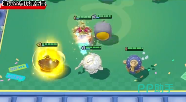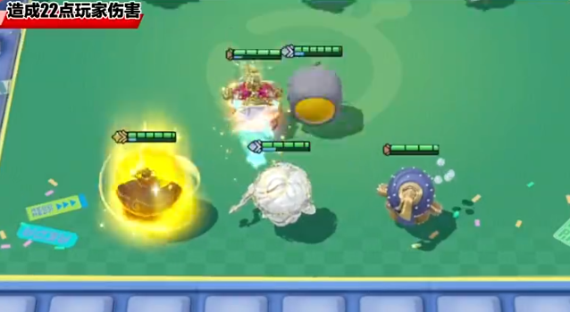 第二张卡牌【我吃年糕你吃黏糕】:战斗开始后,角色每3秒自动向场上一名随机友方或敌方蛋仔投掷年糕或黏糕;友方单位食用年糕可恢复25%当前生命值;敌方单位被黏糕命中则陷入5秒禁锢状态,期间无法移动且技能不可释放。