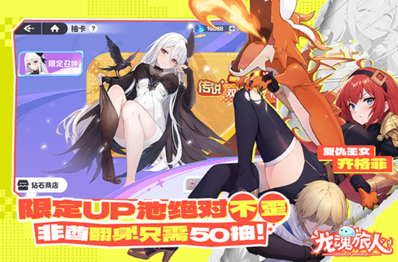 抽卡系统设有明确保底规则:累计50抽必得当期限定角色,且不出现“歪卡”情况。相较部分需数百抽才触发保底的竞品,《龙魂旅人》对零氪及微氪用户更为友好。结合日常任务奖励与挂机收益,玩家平均每周可积攒一次十连抽资源,长期积累下,组建理想阵容难度可控。全角色划分为六大职业体系,各具职能差异,在搭配时需兼顾前排承伤、后排输出、辅助增益等维度,策略性适中,既非无脑堆叠,亦不致过度烧脑。