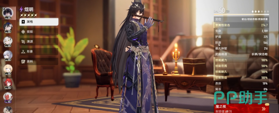 第二位介绍的是煜明,他拥有两个核心天赋:第一个是在释放技能或进行下落攻击造成伤害时,获得一层“弃身”效果,提升自身的暴击伤害以及下落攻击造成的伤害;第二个天赋则根据联机等级提高下落攻击的速度。