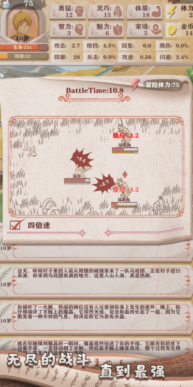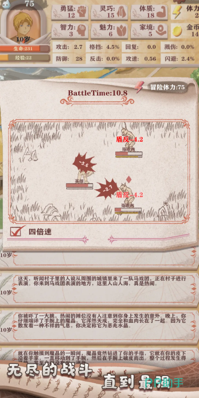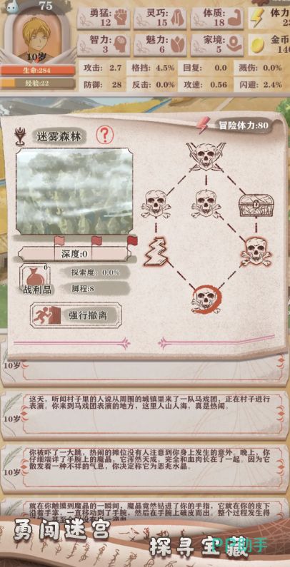 在游戏的前期,玩家一定要保证自己的体质和体力处于健康状态,否则在进行事件处理的状态时,玩家很有可能在下一次事件选择,直接因为扣除点数而殒命。