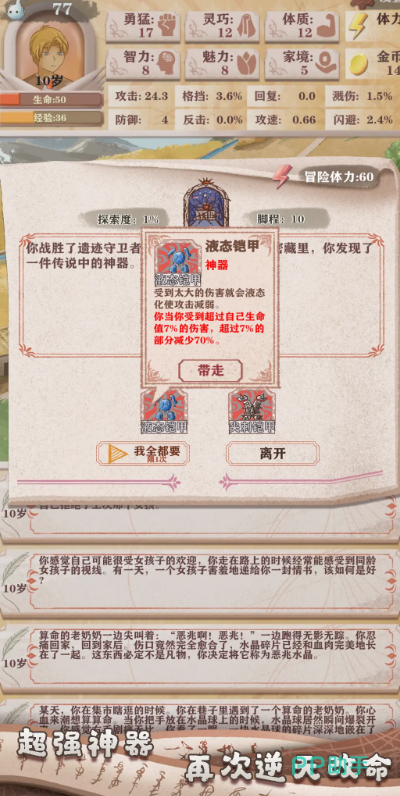 游戏当中在随机冒险事件内,玩家也有可能会获取强劲的神器道具,这些神器道具,可以协助玩家逆天改命。